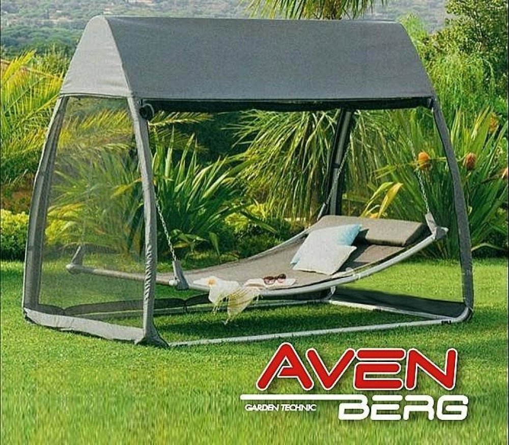 Relaxační lehátko pro 1-2 osoby včetně konstrukce s ochrannou sítí proti hmyzu.