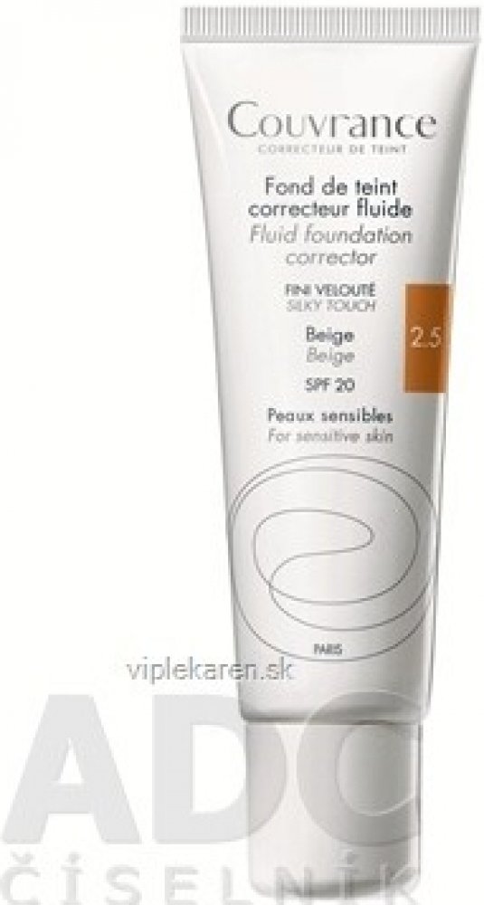 Couvrance Tekutý make-up SPF 20 béžový odstín (2.5) je vhodný pro všechny typy citlivé pleti. Pomáhá zakrýt lehké až střední nedokonalosti, sjednocuje pleť a vytváří tak přirozený vzhled.