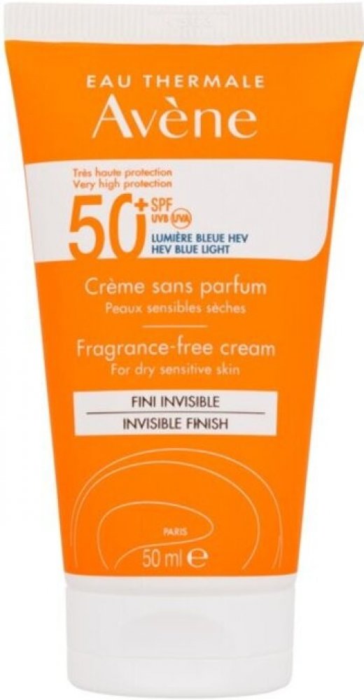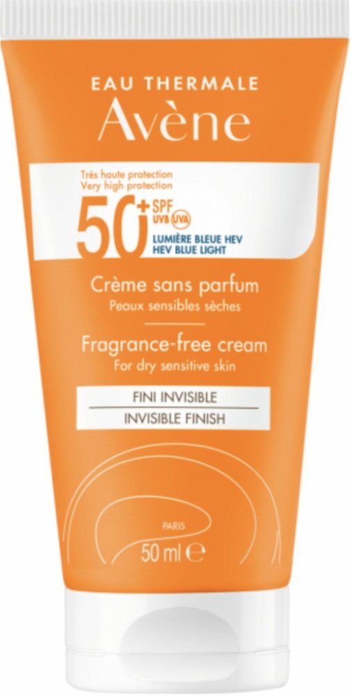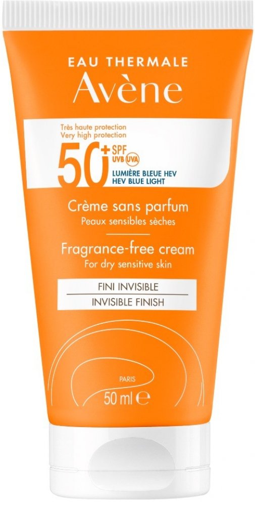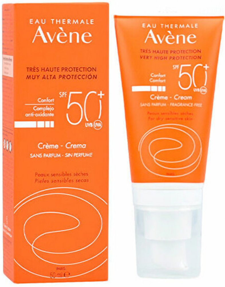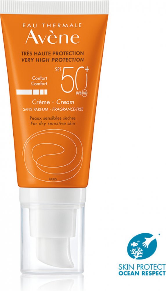 Avène Krém bez parfemace SPF 50+ zajišťuje velmi vysokou ochranu před slunečním zářením. Je vhodný pro suchou až velmi suchou citlivou pleť, zejména pro:
