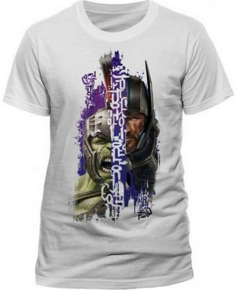 Bílé bavlněné tričko s motivem Thora a Hulka z filmu Tor Ragnarok.