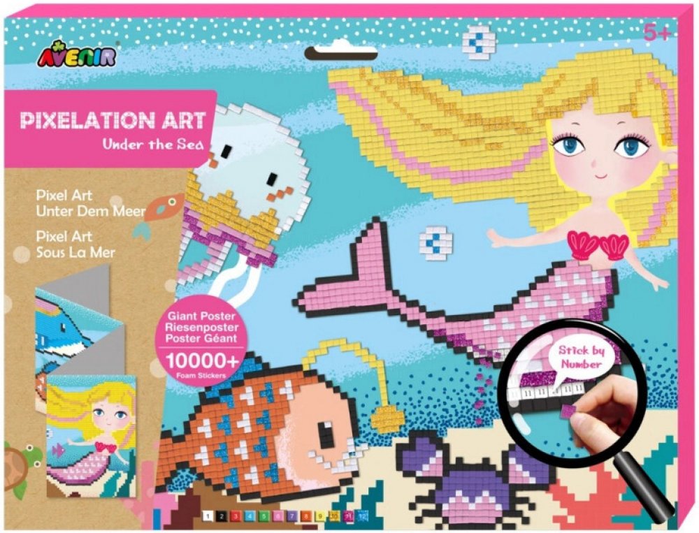 Publikace: Avenir Pixelový obrázek MAXI - Mořská víla - neuveden. Úžasný plakát potištěný brilantními barvami a transportními vzory. Spojte malé samolepky se správně očíslovanými čtverci a dokončete mistrovské dílo.Rozměry: 32 x24 x2 cm Věk 7+ Publikace: Avenir Pixelový obrázek MAXI - Mořská víla - neuveden.