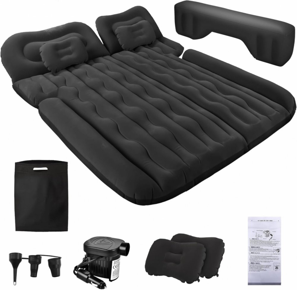 Nafukovací matrace FORMIZON SUV, 180 x 140 cm s pumpou a 2 polštáři, přenosná oboustranná silnější matrace do auta pro cestování, kempování, venkovní použitíAutomatrace s děleným flákováním: Nafukovací matrace do SUV obsahuje: 1 nafukovací automatraci, 2 polštáře, 1 obdélníkovou základnu, 1 vzduchovou pumpičku, 1 přepravní tašku, 1 návod (angličtina není zaručena). Nezávislý design vzduchové komory lze flexibilně přizpůsobit zadnímu sedadlu nebo kufru SUV, MPV, sedanu a dalších modelů a obdélníková základna dokáže efektivně vyplnit prostor pro nohy na zadním sedadle, což usnadňuje vytvoření spacího prostoru v autě. Lze ji také použít jako kempingovou postel, což je nezbytnost pro cestování venku.