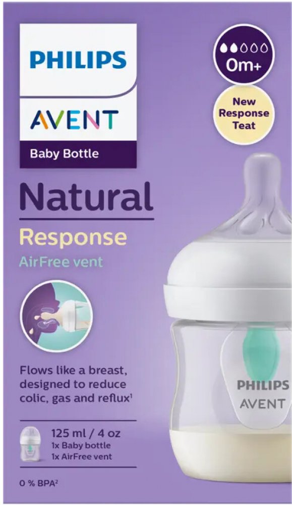 - Zajišťuje klidné, pohodlné krmení. Dudlík Natural Response podporuje přirozený rytmus sání, polykání a dýchání dítěte a ventil AirFree je navržen tak, aby odváděl vzduch z láhve, a chránil tak proti kolice, plynatosti a refluxu.