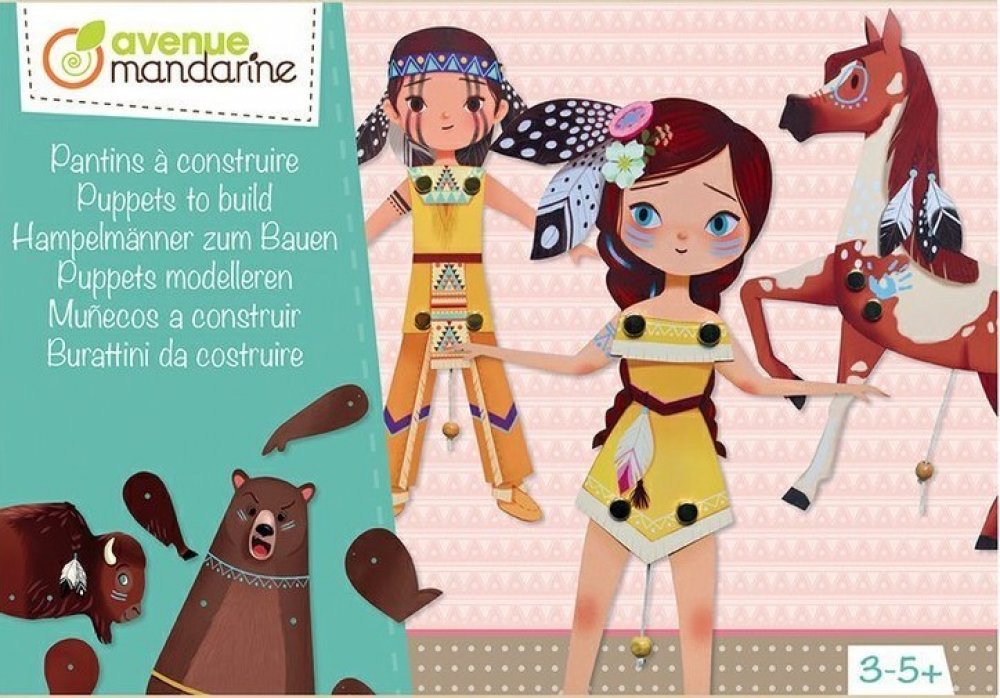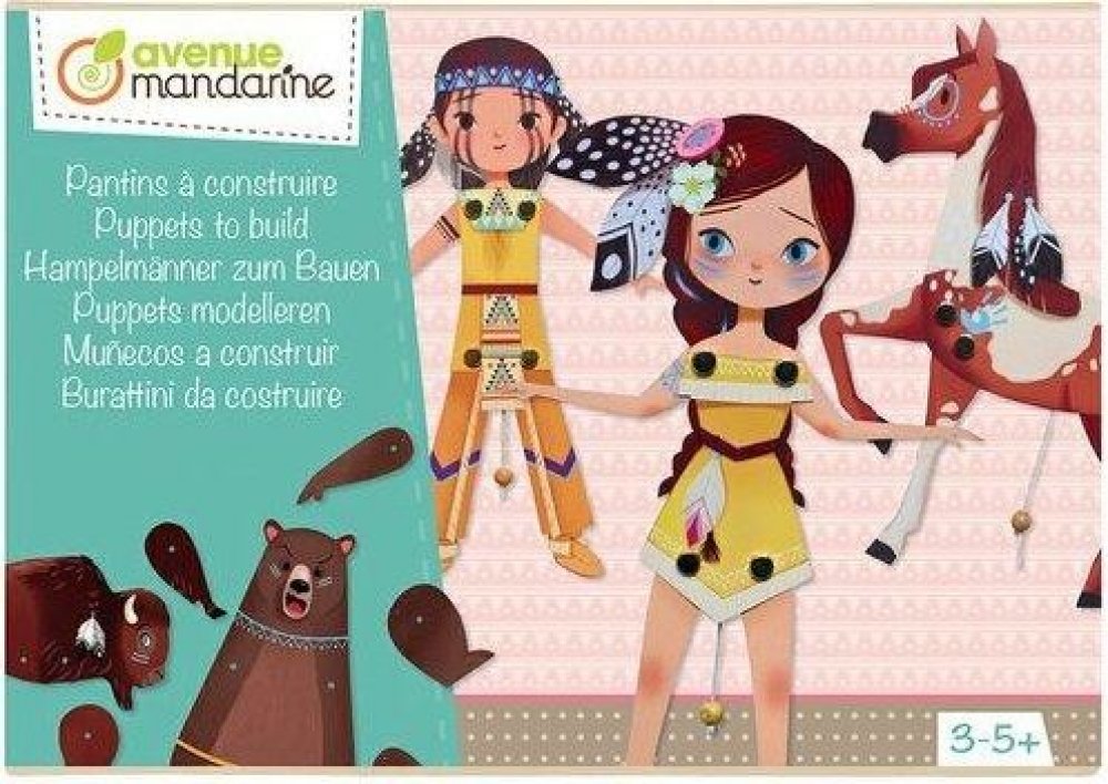 Pohyblivé loutky - Indiáni od firmy Avenue Mandarine je kreativní sada, ve které si děti vytvoří vlastní krásné pohyblivé loutky Indiánů a zvířátek. Balení obsahuje vše, co je k tomu potřeba. Stačí přidat jen šikovné ruce!