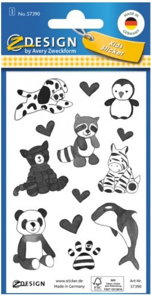 Nádherné dětské samolepky s 8 různými černobílými zvířecími vzory a třpytivými efekty jsou ideální jako malý dárek, jako dárek na dětské narozeninové oslavy nebo jako motivace k lepšímu domácímu úkolu. Děti si mohou se samolepkami hrát nebo ručně vyrábět, nalepovat je na své školní náčiní jako např. sešity, penál nebo brašnu. S láskou navržené dětské samolepky jsou vyrobeny z vysoce kvalitního papíru s certifikátem FSCR a jsou bezpečné pro děti od 3 let, označené CE a jsou pravidelně testovány a potvrzovány externími laboratořemi.