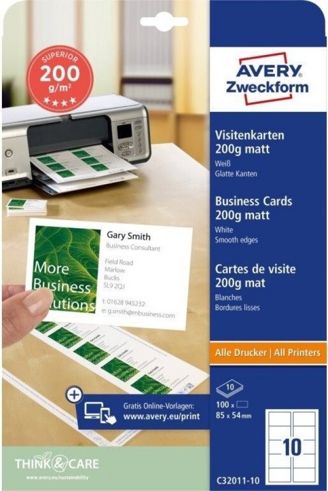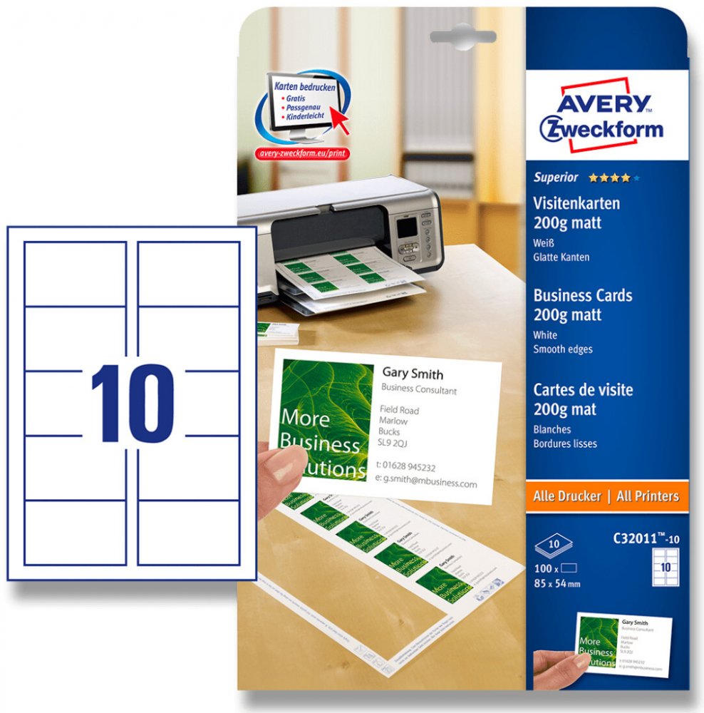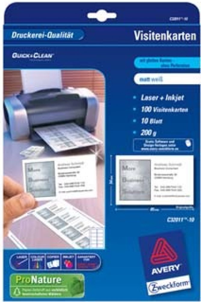 Avery Zweckform 85x54 mm, 200g, 10 listů, matné, bílé C32011-10