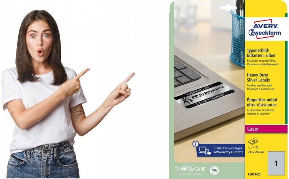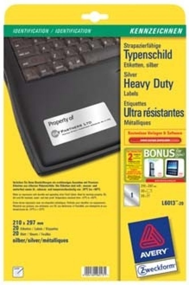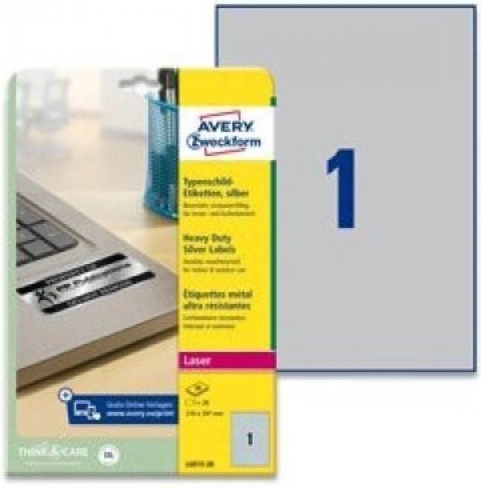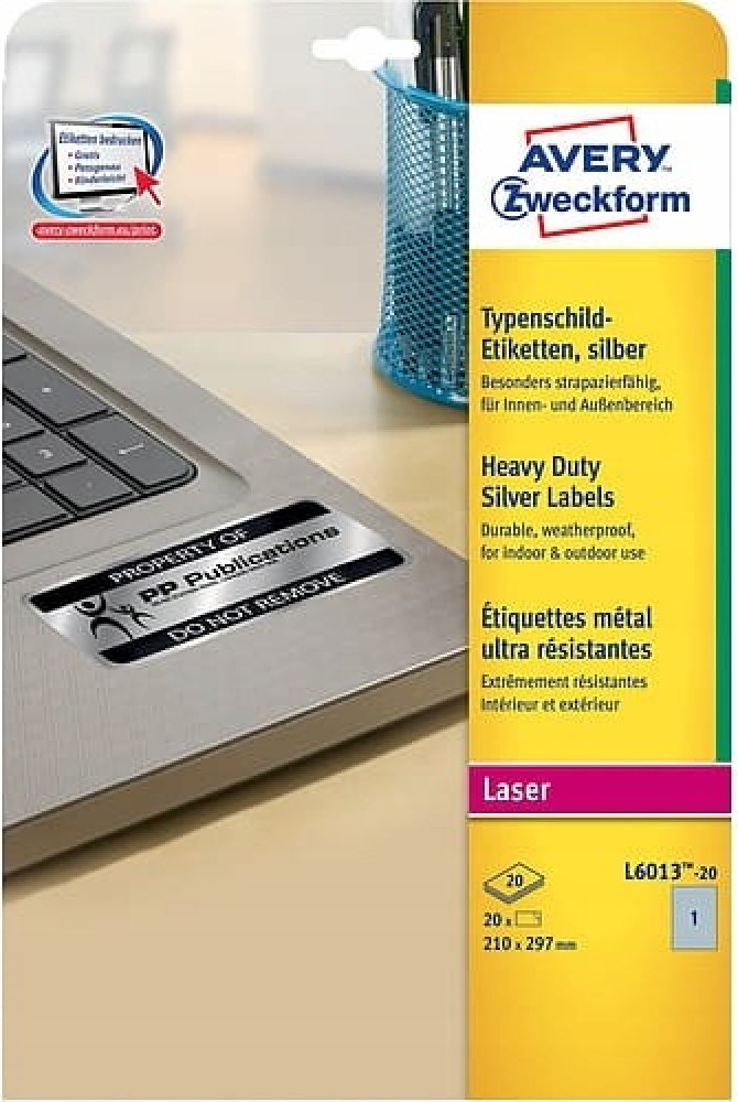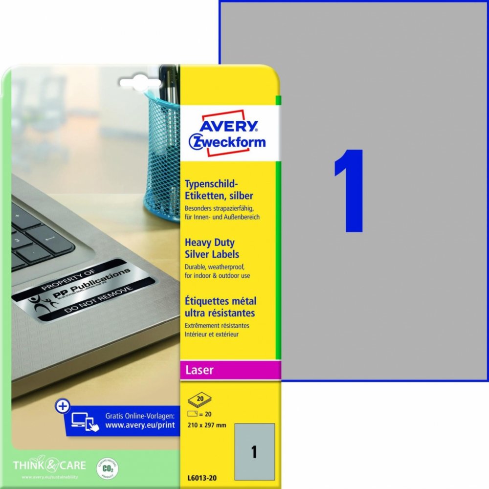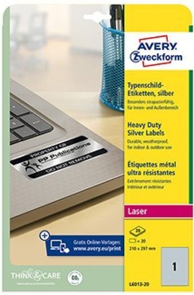 Avery Zweckform Etikety 20 ks A4 stříbrné 210 x 297 mm velmi odolné pro laserové tiskárny L6013-20