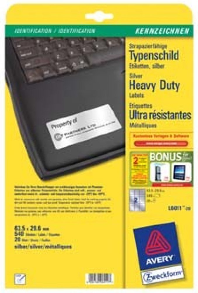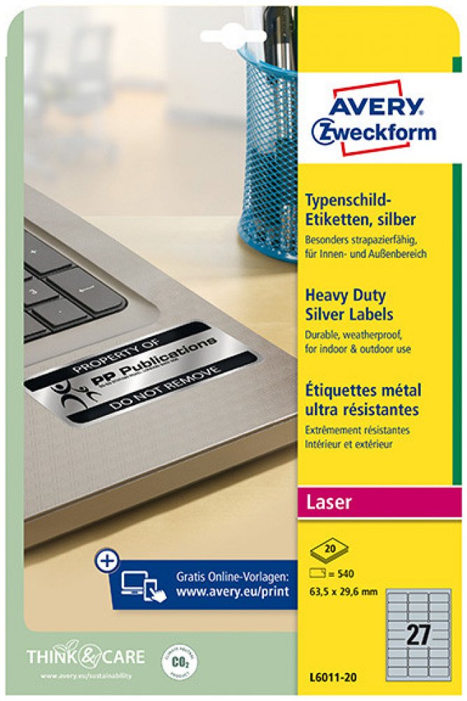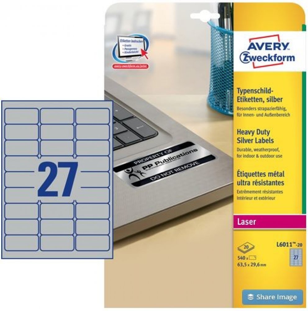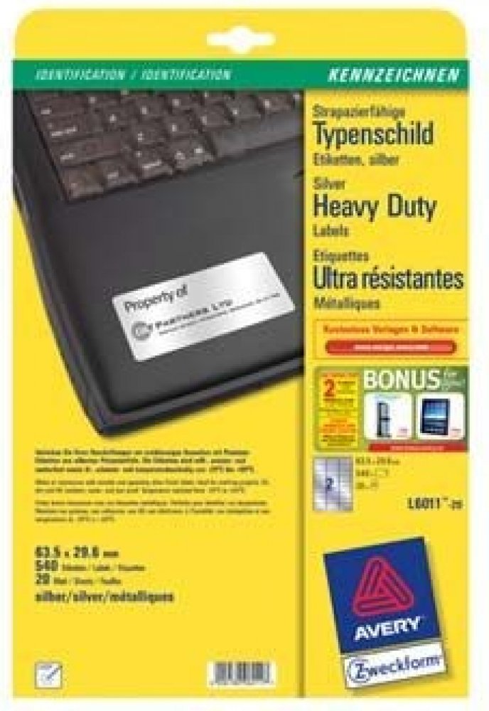 Avery Zweckform L6011-20 Velmi odolné etikety 63,5x29,6mm 540 ks stříbrná