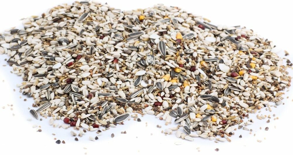 Směs obsahuje: slunečnice bílá, pohanka, kardi, kukuřice žlutá a červená, čirok červený, oves bezpluchý, semenec, slunečnice žíhaná, slunečnice žíhaná velká, čirok bílý, proso žluté, lesknice, oves setý, oves černý, dýňová semena, cedrové ořechy, ostropestřec.