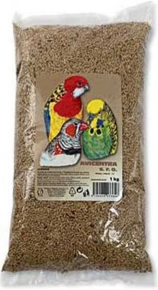 Doplňkové krmivo pro ptactvo. Lesknici můžeme dávat samostatně, přidat do krmiva nebo podávat i jako pamlsek.