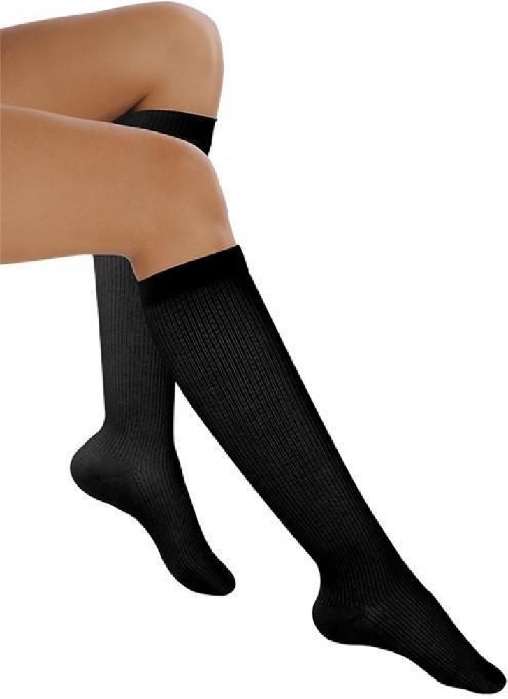 Lýtkové punčochy první kompresní třídy (18 - 21 mmHg) s přídavkem bavlny. Lýtková kompresní podkolenka vel. 36-38, barva černá, Unisex.