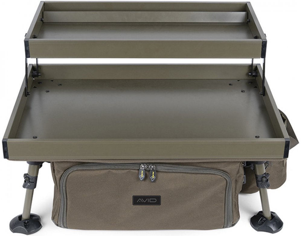 Avid Double Decker Bivvy Organiser je promyšlený dvoupatrový stolek, který maximálně usnadňuje organizaci výbavy během rybářských výprav.