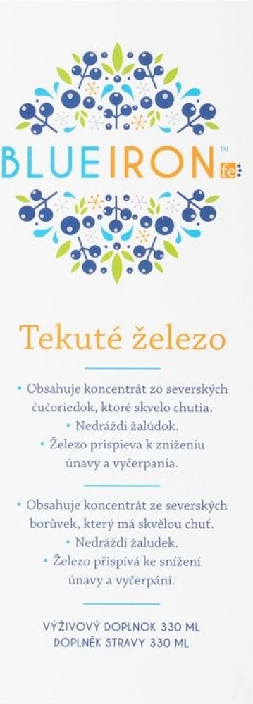 Doplněk stravy. Obsahuje koncentrát ze severských borůvek. Železo přispívá ke snížení vyčerpání a únavy. Složení: Minerální voda, koncentrát ovocné šťávy (20%) (hruška), borůvkový koncentrát, vitamín C (kyselina askorbová), vitamin E (alfa-tokoferylacetát), železo redukované, regulátor kyselosti: kyselina citrónová, oxid zinečnatý, zahušťovadlo: xanthanová guma , vitamin B12 (kyanokobalamin), konz...