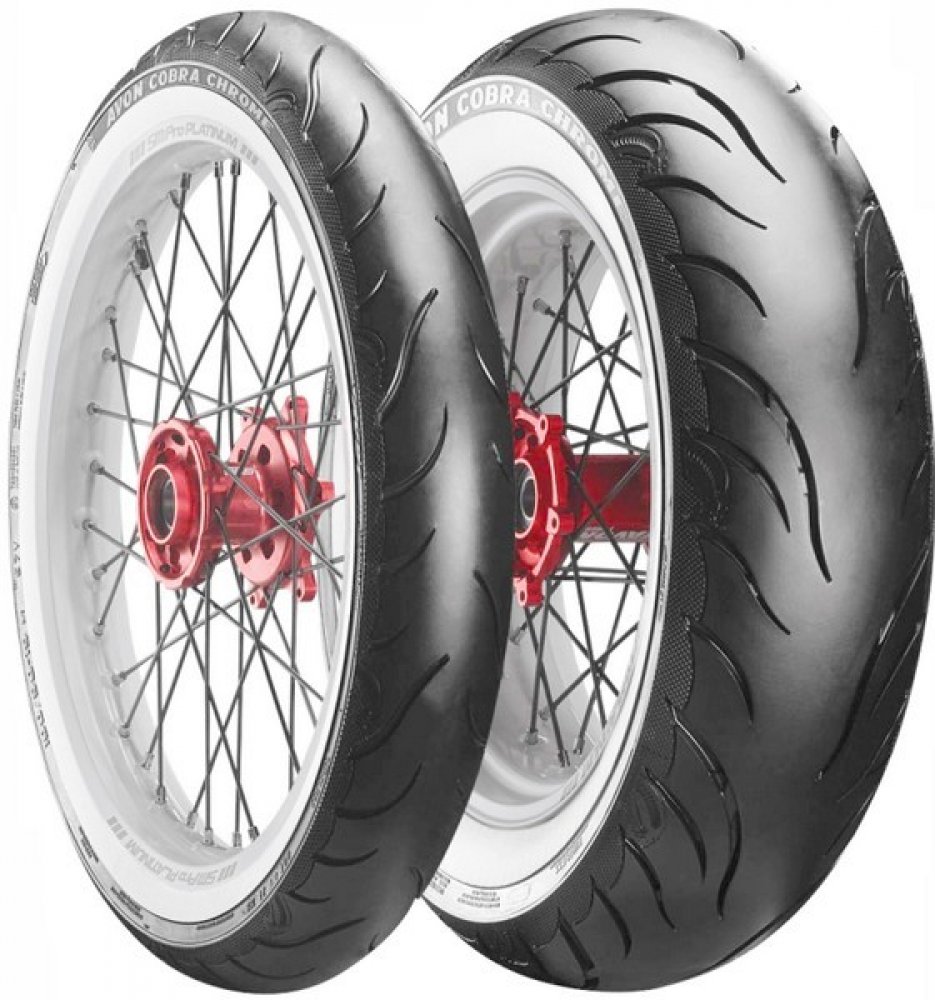 Prémiové pneu pro cruisery Unikátní design, vyšší výkon a delší životnost běhounu! Nová prémiová cestovní pneumatika AVON COBRA CHROME nabízí nejen vynikající výkonnost, ale také stylový vzhled inspirovaný designem Cobra. Díky pokročilé konstrukci poskytuje výjimečnou stabilitu a odolnost za všech podmínek, což zajišťuje bezpečnou a pohodlnou jízdu. AV91 – Přední pneu AV92 – Zadní Pneu Maximální přilnavost: Větší styčná plocha zabezpečuje optimální grip na všech typech povrchů. Delší životnost: Inovované složení směsi prodlužuje životnost běhounu o 10 % oproti předchozím modelům. Široká škála specifikací: Tato řada nabízí různé specifikace a velikosti pro cruisery a cestovní motocykly. Výjimečná ovladatelnost: Nejnovější směs zaručuje excelentní handling a perfektní brzdné vlastnosti na mokru. Bezpečnost a komfort: Poskytuje velmi bezpečné řízení a úžasný požitek z jízdy díky jedinečné stabilitě a špičkovému gripu. Mimořádný kilometrový nájezd: Navržena pro dlouhé cesty, nabízí prvotřídní kilometrový nájezd. Zažijte novou úroveň jízdy s pneumatikami AVON COBRA CHROME, které kombinují prvotřídní výkon s elegantním designem. Velmi široká nabídka AVON sahá od pneumatik pro motocykly a osobní vozy přes terénní vozy 4x4, lehká užitková vozidla až po pneumatiky závodní. Přitom je u Avon vždy zachován vynikající poměr výkon/cena. Největší důraz je vždy kladen na bezpečnost, jízdní komfort a správnou přilnavost. Špičkoví výrobci automobilů jako Rolls Royce, Bentley, Morgan, Westfield, Caterham nebo Land Rover vybavují své vozy pneu Avon v prvovýrobě.