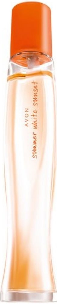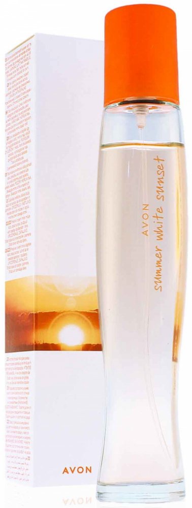 Avon 50 ml dámské toaletní vody květinové pro večerní akce s celodenní výdrží (4-8h) romantické a smyslné Summer White Sunset 2013 z Polska mainstreamové broskev, růžový pepř lotosový květ, mandarinka březové dřevo se střední projekcí letní kompatibilní s lotosovým květem, s mandarinkou, s březovým dřevem AVON Cosmetics klasické TSA kompatibilní (≤100ml) rozprašovač 200 g standardní