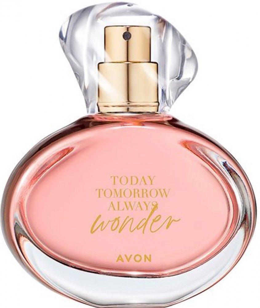 Avon 50 ml dámské parfémované vody květinové univerzální s celodenní výdrží (4-8h) svěží a energické Today Tomorrow Always Wonder z Polska mainstreamové bergamot poupě pomerančovníku cedrové dřevo se střední projekcí letní kompatibilní s bergamotem, s neroli, s cedrem AVON Cosmetics klasické TSA kompatibilní (≤100ml) rozprašovač 210 g obsahuje známé alergeny Citronellol, Geraniol, Linalool, Limonene