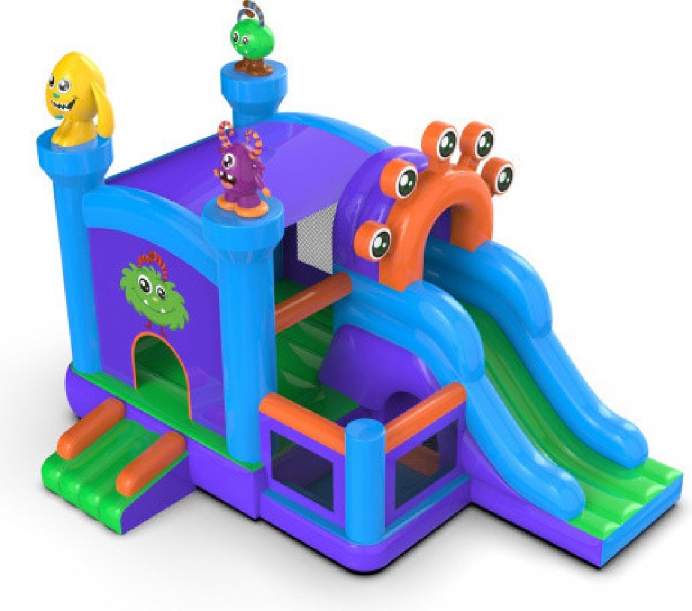 Atrakce pro nejmenší děti - mini kombi, kombinace nafukovací skluzavky a skákacího hradu. Zábava jako na potvoru zaručena. Nafukovací atrakce s motivem příšerek vás nenechá lhostejnými. Zaujme svými pestrobarevnými postavičkami, které jsme navrhli tak, aby s nimi byla zábava. Tyto příšerky jsou přátelské a rády si s dětmi hrají. Pusťte se do zábavy a poznejte naše příšerky osobně.