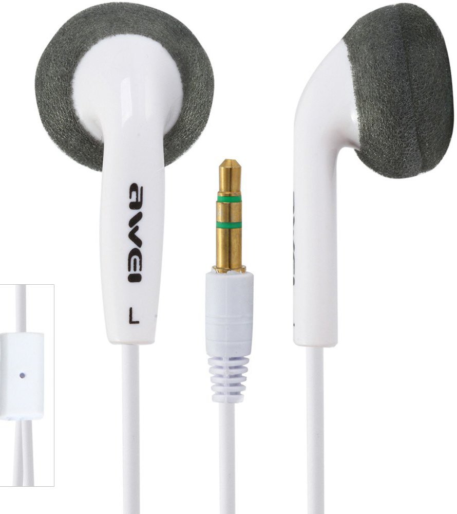 kabelová 32 Ohm k mobilním telefonům 25000 Hz 18 Hz Awei 96 dB/mW do uší 3,5 mm Jack pecky 120 cm 11 g 15.4 mm