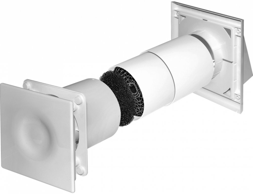 7-teleskopický ventilační kanál umožňující snadné přizpůsobení tloušťce stěny místnosti