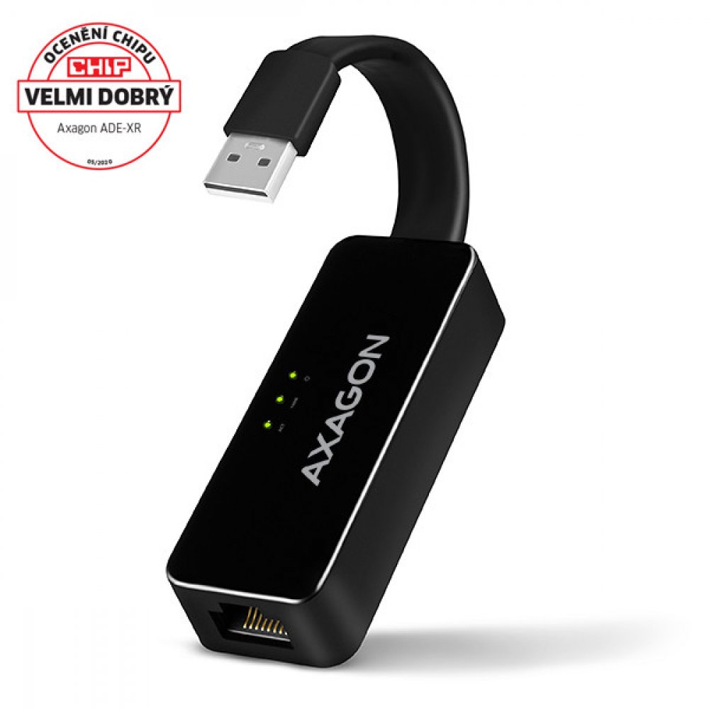 Kompaktní adaptér AXAGON ADE-XR snadno přemění USB 2.0 port na Fast Ethernet 10/100Mbit port.
