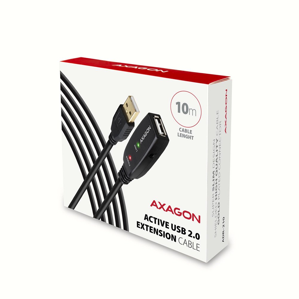 Aktivní prodlužovací USB 2.0 kabel AXAGON ADR-210 délky 10 metru.