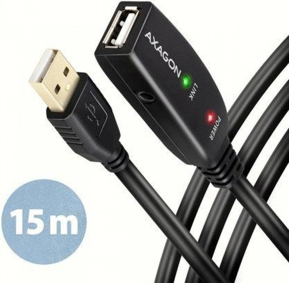 Aktivní prodlužovací USB 2.0 kabel AXAGON ADR-215 délky 15 metrů je ideální k propojení Vašeho počítače s USB zařízením jako je myš, klávesnice, webkamera, tiskárna, skener, plotr a dalšími. Aktivní USB repeater kabel zesiluje průchozí signál a umožnuje připojit USB zařízení na výrazně větší vzdálenost, než Vám umožní pasivní kabel. Dosah kabelu je možné dále prodloužit použitím několika kabelů za...
