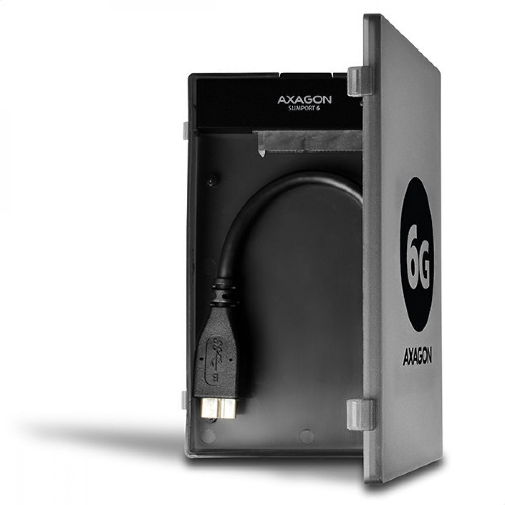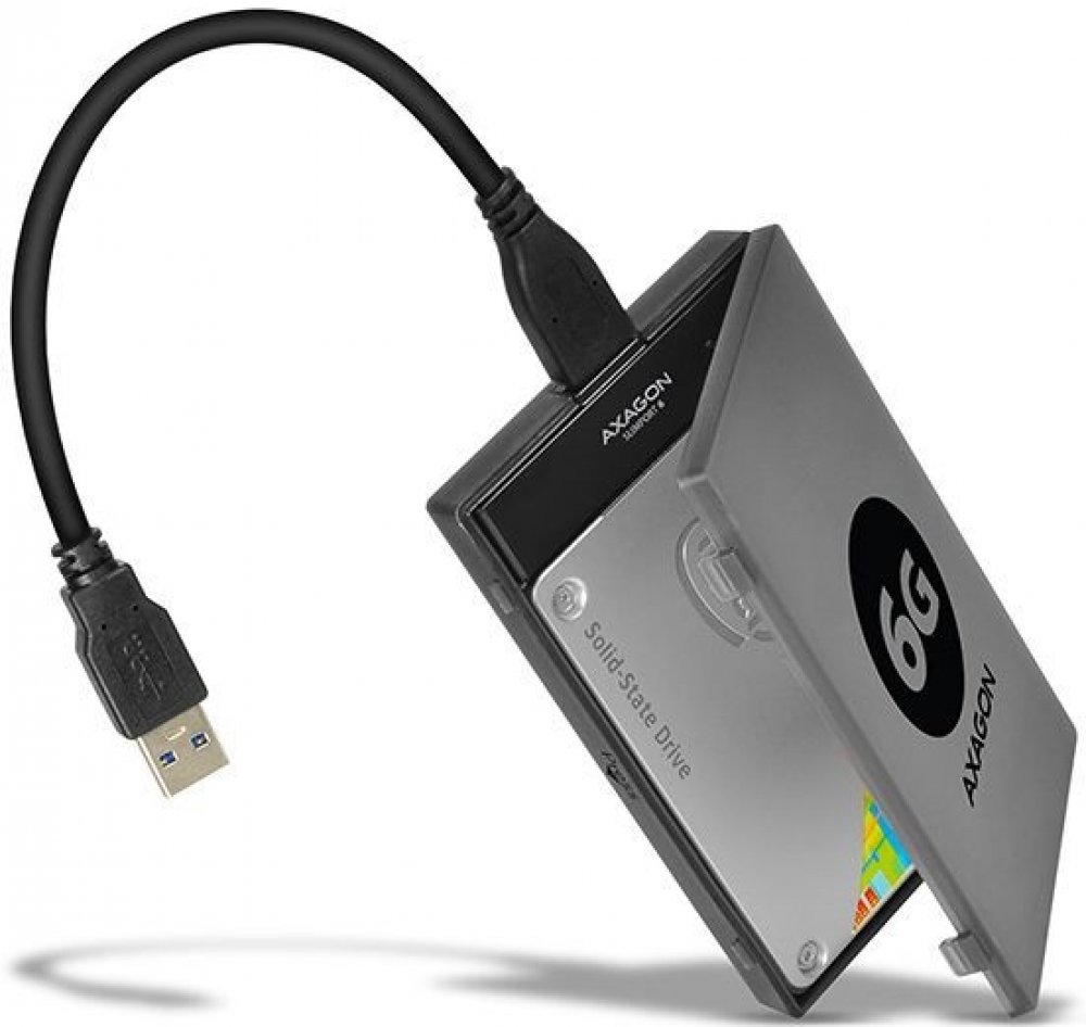 Kompaktní vysokorychlostní adaptér AXAGON ADSA-1S6 SLIMport6 s USB 3.0 a SATA 6G rozhraním určený pro snadné připojení SSD nebo 2.5" SATA disku.
