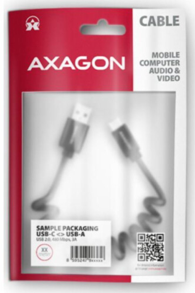 Kroucený propojovací USB-C USB-A datový a nabíjecí AXAGON BUCM-AM10TB TWISTER USB 2.0 kabel s konektory USB-C male a USB-A male. Kabel je navržen pro synchronizaci dat a nabíjení telefonů, tabletů a dalších mobilních zařízení. Podporuje přenos dat rychlostí až 480 Mb/s a nabíjení proudem až 3A.