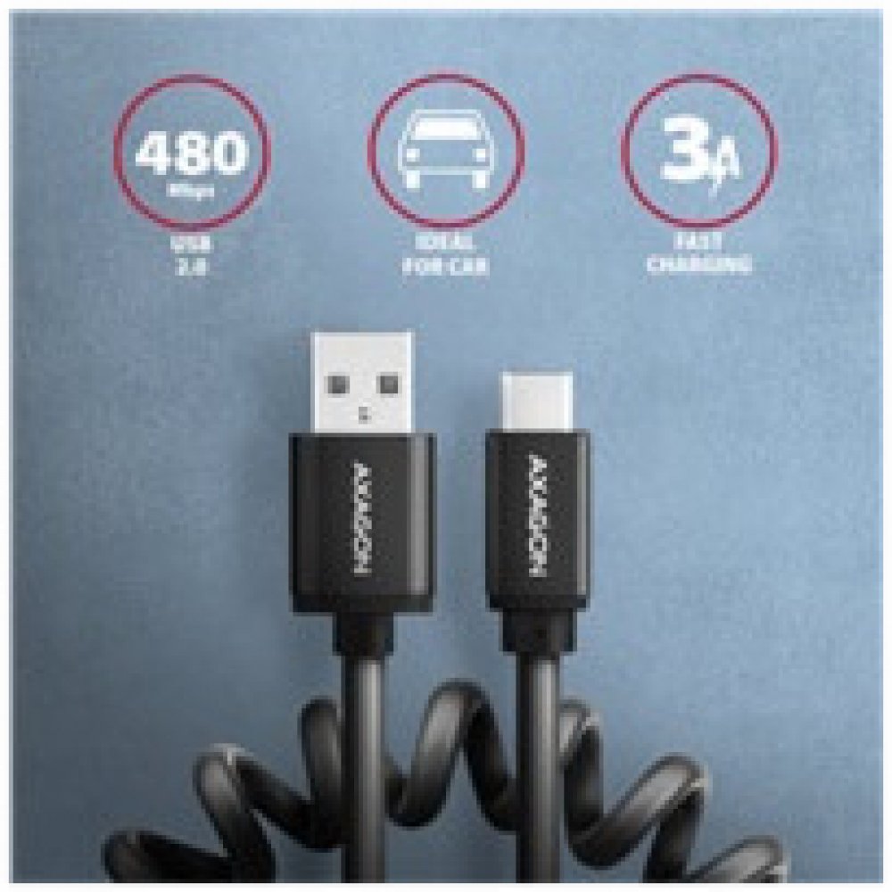 Odolný datový a napájecí kabel s prodlouženou životností je opatřen kovovými koncovkami, konektory s poniklovaným povrchem a pozlacenými kontakty. Vodiče kabelu jsou vyrobené z pocínované bezkyslíkaté mědi. Kvalitní izolace kabelu, vyrobená z flexibilního TPE, zaručuje maximální odolnost, ale zachovává i dostatečnou ohebnost. Díky kroucenému a natahovacímu provedení kabel zabírá minimum místa a je tak ideálním doplňkem do auta. Ve zkráceném stavu je kabel dlouhý jen 35 cm a nikde nepřekáží. V nataženém stavu pohodlně dosáhne 60 cm daleko od zásuvky.