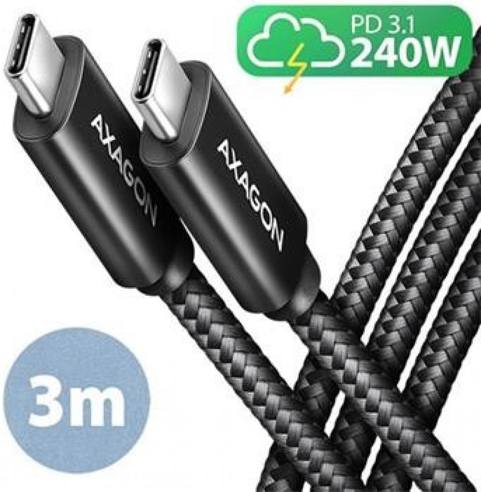 Datový a nabíjecí USB 480Mbps kabel délky 3 m. PD 240W, 5A. Černý opletený.Prémiový propojovací USB-C USB-C datový a nabíjecí AXAGON BUCM2-CM30AB CHARGE kabel s konektory USB-C male na obou koncích. Kabel je navržen zejména pro nabíjení a napájení počítačů, monitorů, notebooků, telefonů, tabletů a dalších zařízení. Podporuje také přenos dat rychlostí až 480 Mb/s.