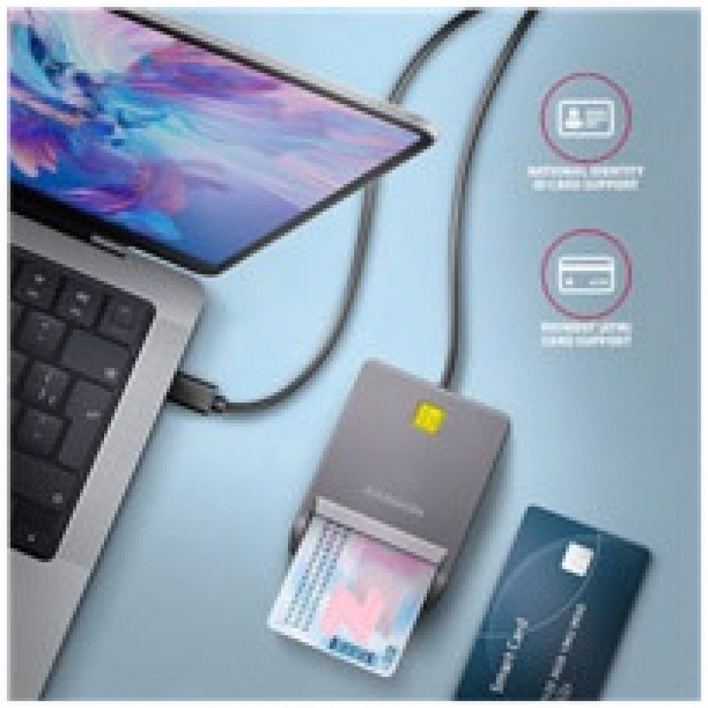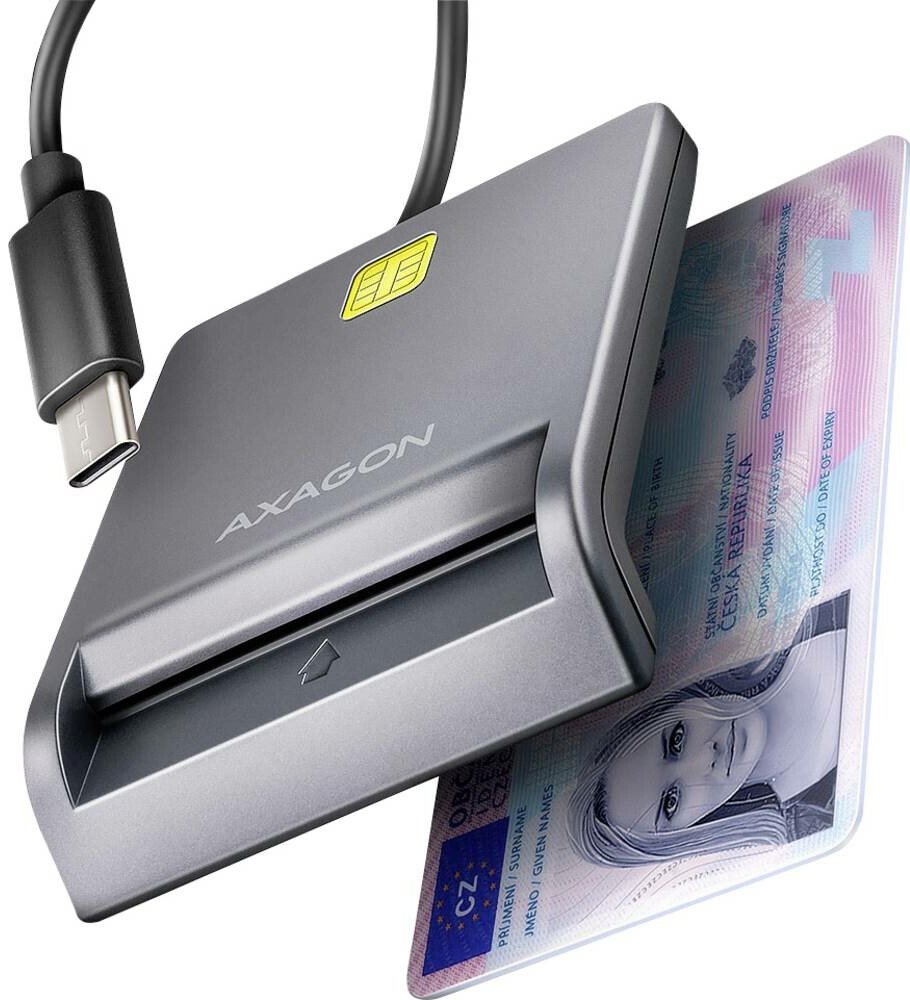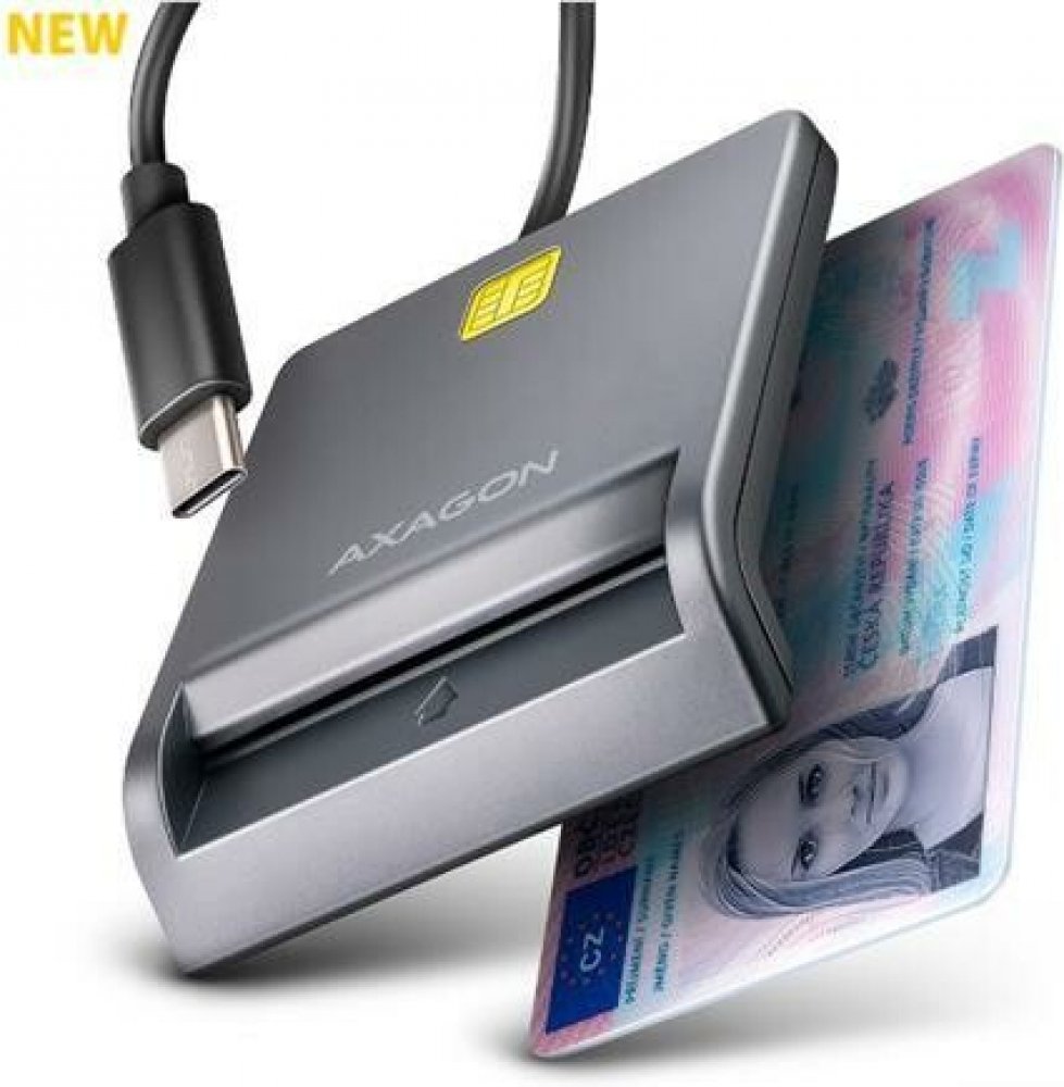 Kompaktní stolní čtečka Smart card / ID card AXAGON CRE-SM3TC FlatReader s USB 480 Mbps rozhraním. Je vhodná zejména jako čtečka občanských průkazů pro použití s mobilními telefony a počítači vybavenými USB-C vstupem. Oboustranný USB-C konektor zjednodušuje použití tím, že odstraňuje nutnost správné