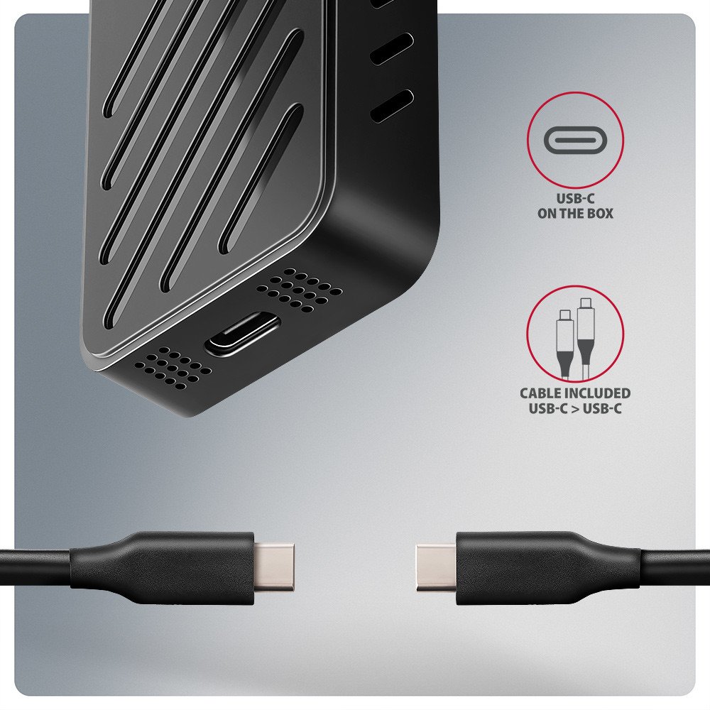Axagon Černá NVMe M.2 SSD externí box 1x USB-C 3.2 Gen 2x2 M.2 1.5 cm 11.2 cm 4 cm 83 g hliník s plastovými částmi