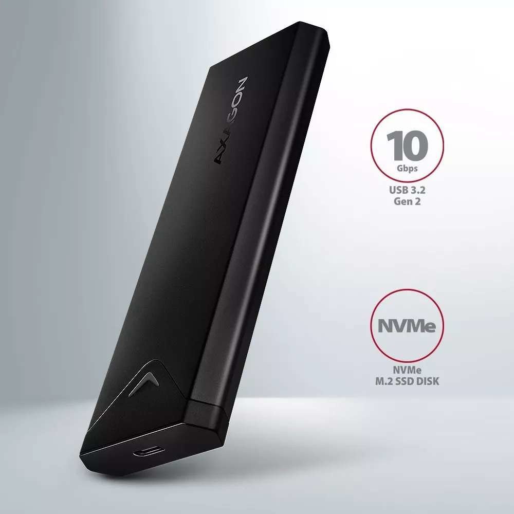 Axagon černá NVMe M.2 SSD externí box 1x USB-C 3.2 Gen 2 M.2 hliník 43 g