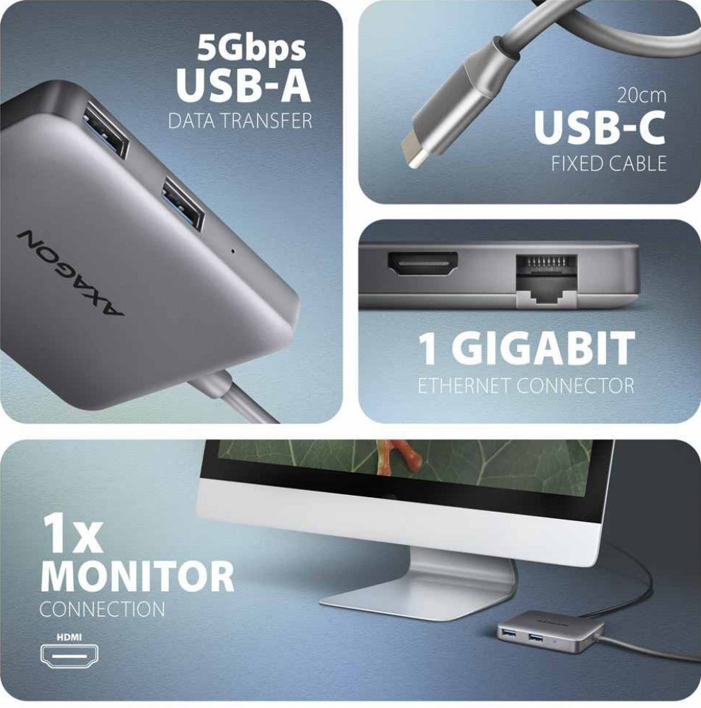 Multiportový USB-C 5Gbps hub AXAGON HMC-5HL rozšíří Váš notebook o pět portů. Přes oboustranný USB-C konektor snadno a rychle připojíte k počítači monitor, dvě USB zařízení a Gigabitovou ethernet síť současně. Zároveň získáte možnost napájení notebooku pomocí technologie Power Delivery. USB-C hub tak zastane funkci univerzální a výkonné dokovací stanice 5v1 pro moderní notebooky.