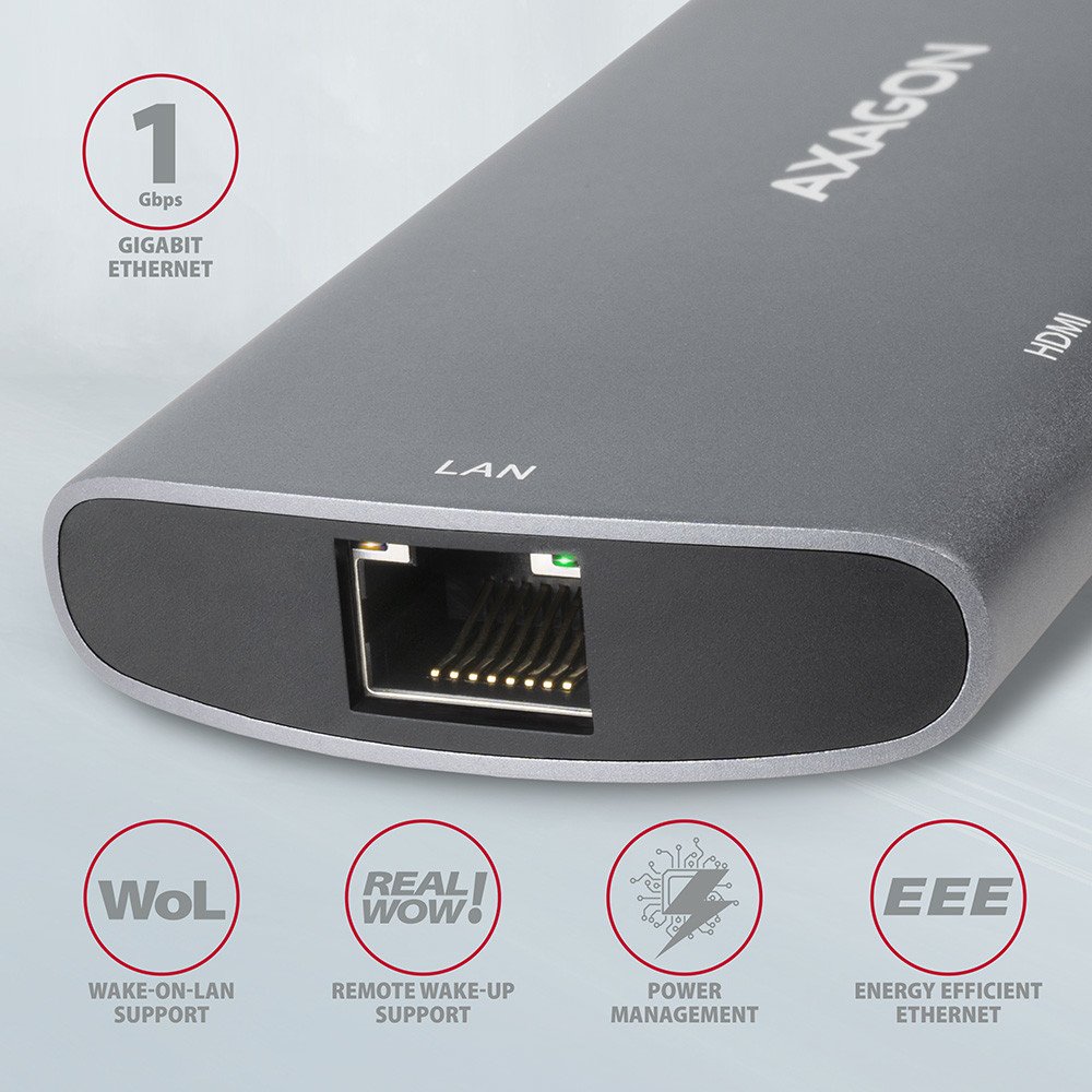 Elegantní hliníkové tělo zajistí nejen mechanickou odolnost, ale i kvalitní chlazení. Potěší také jemně strukturovaný povrch, na kterém nezůstávají otisky prstů. Replikátor portů je ideálním doplňkem pro notebooky bez USB-A konektorů, síťové karty a video výstupu. Napevno uchycený USB-C kabel délky 18 cm.