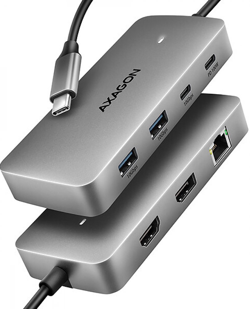 Multiportový USB-C 10Gbps AXAGON HMC-CUB83X2 DUAL 4K DISPLAY 7in1 hub rozšíří váš notebook, počítač nebo telefon o dva video výstupy, LAN konektor a USB porty. Notebook připojíte k hubu pomocí 15 cm dlouhého USB-C kabelu. Okamžitě tak získáte možnost připojení dvou 4K monitorů, tří USB zařízení a konektoru RJ-45 pro Gigabitovou Ethernet síť. Zároveň je k dispozici napájení notebooku prostřednictvím technologie Power Delivery. Kompatibilita s Thunderbolt 3/4/5 vám poskytne dokovací stanici 7v1 pro notebooky, jako je například Apple MacBook Air nebo Pro. Tři datové USBUSB rozbočovač nabízí tři datové USB 10Gbps výstupy, dva se standardním USB-A a třetí s USB-C konektorem. Díky USB 3.2 Gen 2 rozhraní je přenosová rychlost hubu až 10 Gb/s. Hub zvládne trvalé připojení několika externích disků současně. Výkon až 100 WDalší USB-C konektor je vyhrazen pouze pro nabíjení telefonů nebo notebooků pomocí technologie Power Delivery 3.0 výkonem až 100 W. Do hubu zapojíte vhodnou USB-C Power...