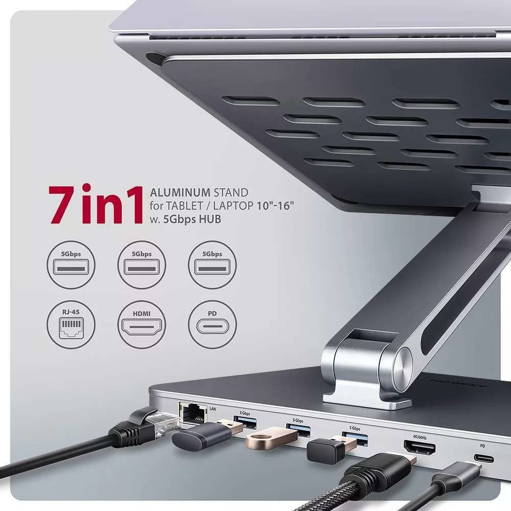 AXAGON HMC-STND je revoluční kombinace stojanu pro notebook a multifunkčního USB hubu. Vlastnosti produktu