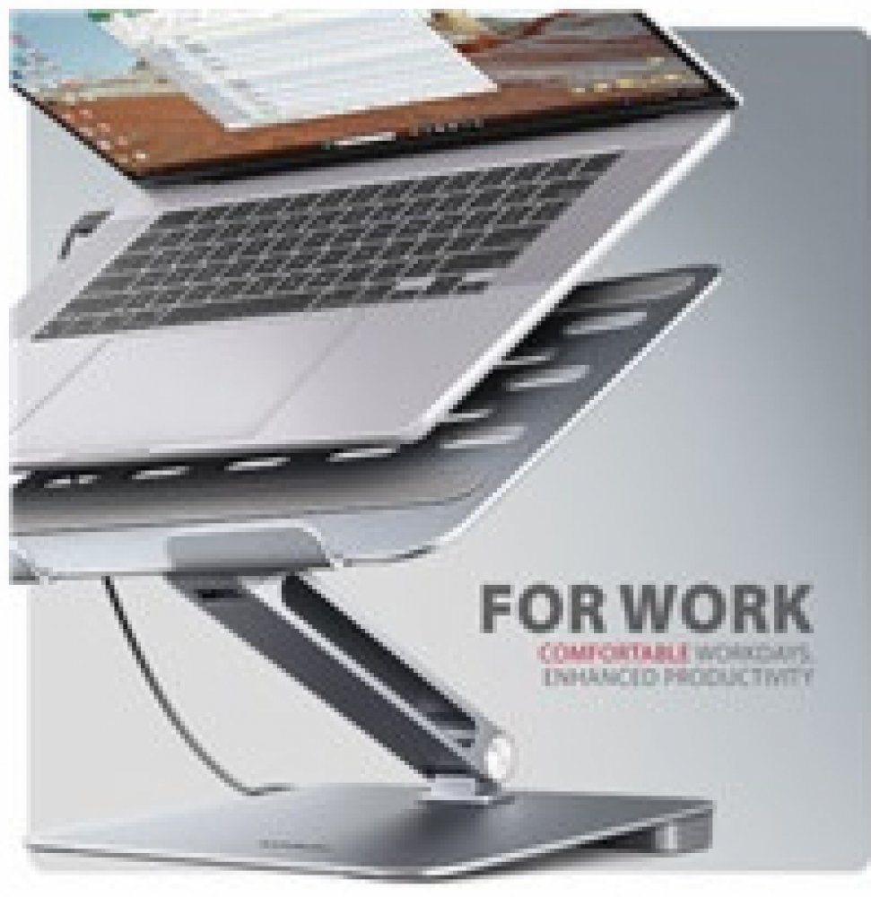 Stojan je vyroben z robustních hliníkových odlitků pro dlouhou životnost. Protiskluzová úprava zajišťuje stabilitu notebooku na stojanu. Plug and Play