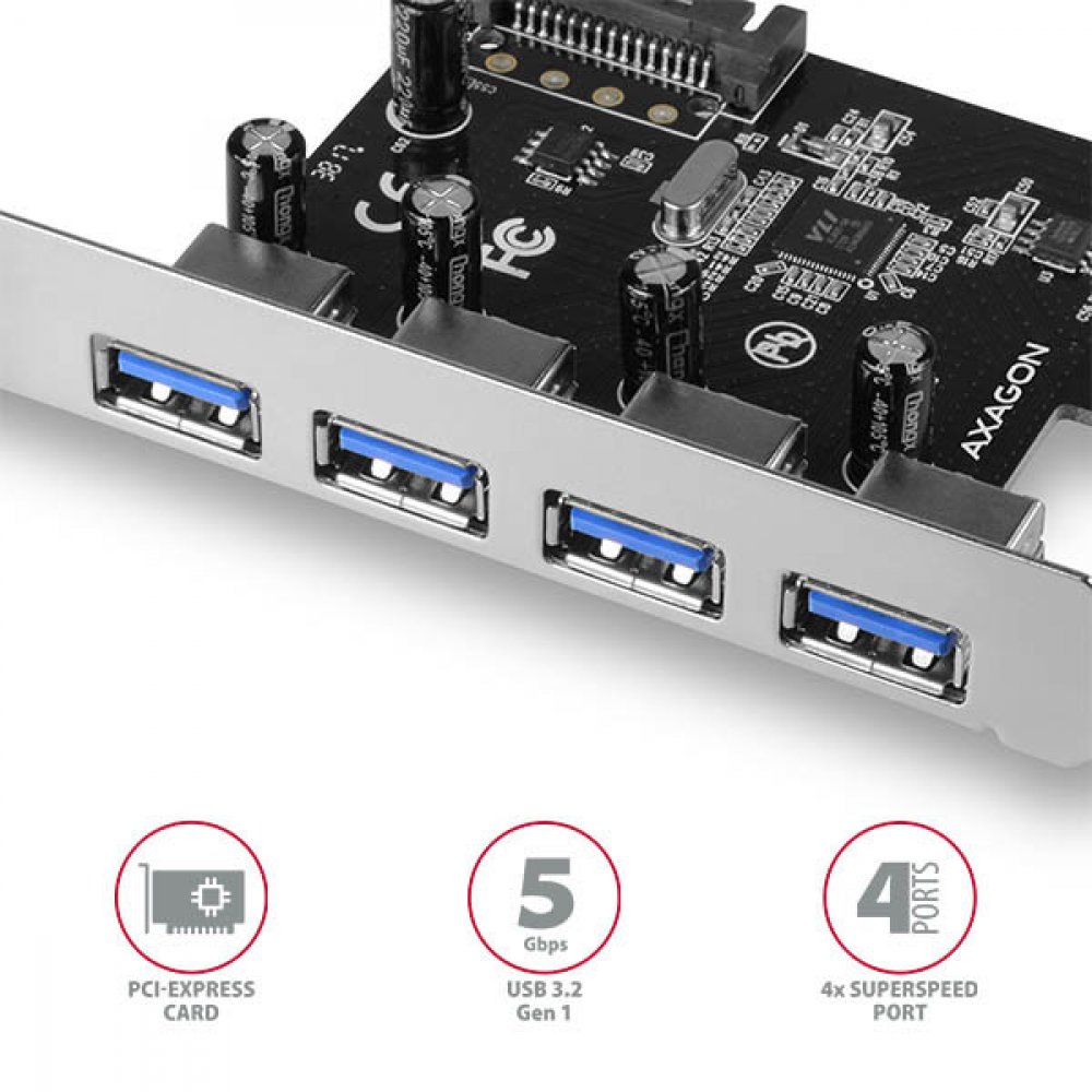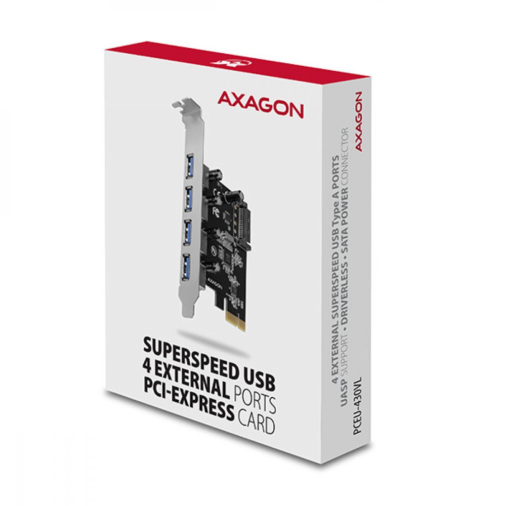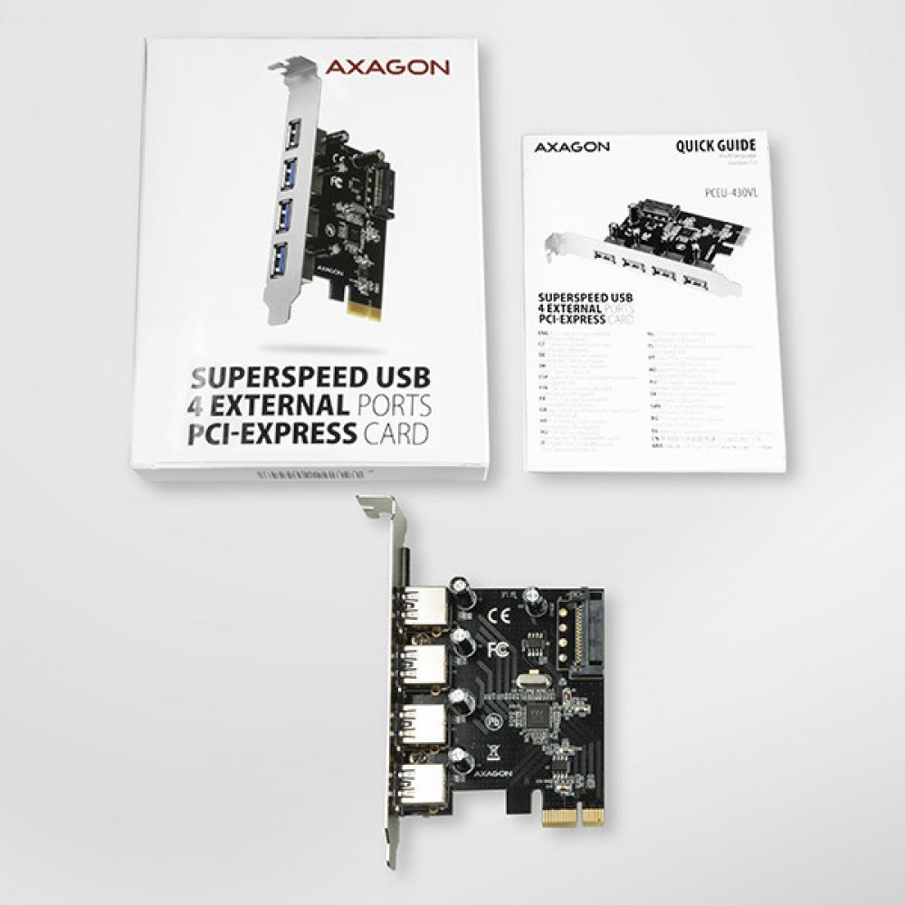 PCI-Express karta AXAGON PCEU-430VL rozšíří stolní počítač o čtyři externí vysokorychlostní USB 3.2 Gen 1 porty.