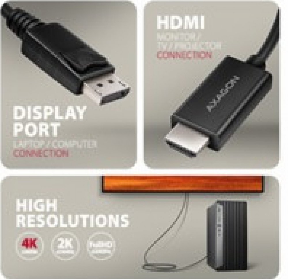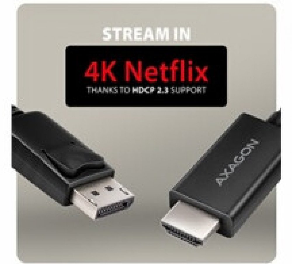 Tento kabel umožňuje připojení HDMI monitoru či projektoru k počítači s výstupem DisplayPort. Podporuje rozlišení až 4K při 60 Hz / 2K při 144 Hz nebo 1080p při 240 Hz. Díky podpoře HDR si můžete bez omezení vychutnat výrazně rozšířený rozsah barev a kontrastů. DP konektor disponuje bezpečnostními západkami, které zabraňují náhodnému odpojení. Kabel i konektory jsou chráněny proti zalomení.Kabel je pouze jednosměrný, tj. z DisplayPort na HDMI, ne naopak.
