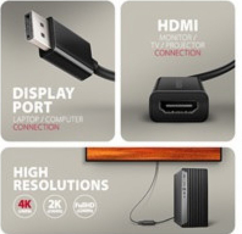 Tento adaptér umožňuje připojení HDMI monitoru k počítači s výstupem DisplayPort. Podporuje rozlišení až 4K při 60 Hz / 2K při 144 Hz.Redukce je pouze jednosměrná, tj. převodník z DisplayPort na HDMI, ne naopak.