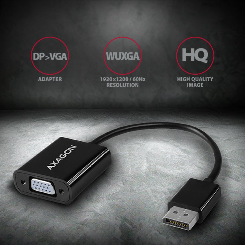 DisplayPort -> VGA aktivní adaptér AXAGON RVD-VGN pro připojení staršího VGA monitoru/TV/dataprojektoru k počítači nebo jinému zařízení s výstupem Display Port.