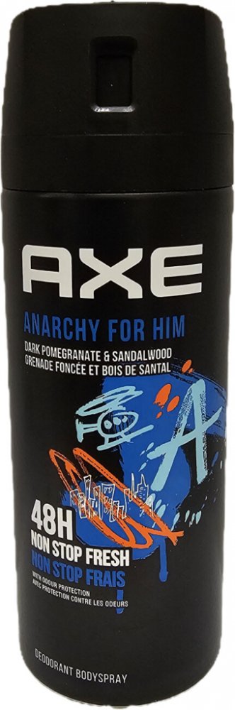 Axe Anarchy For Him je deosprej s kombinací svěží ovocné vůně a sladkého santalového dřeva a bílého jantaru. Axe Anarchy For Him evokuje Axe vůni, která je neodolatelná a návyková.