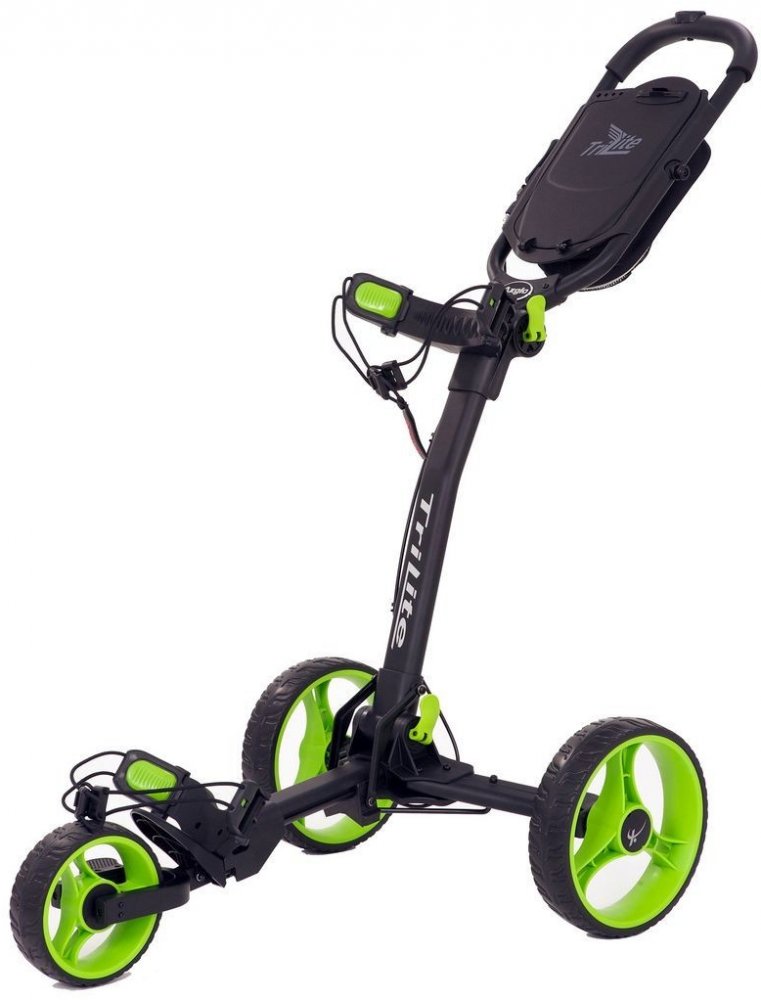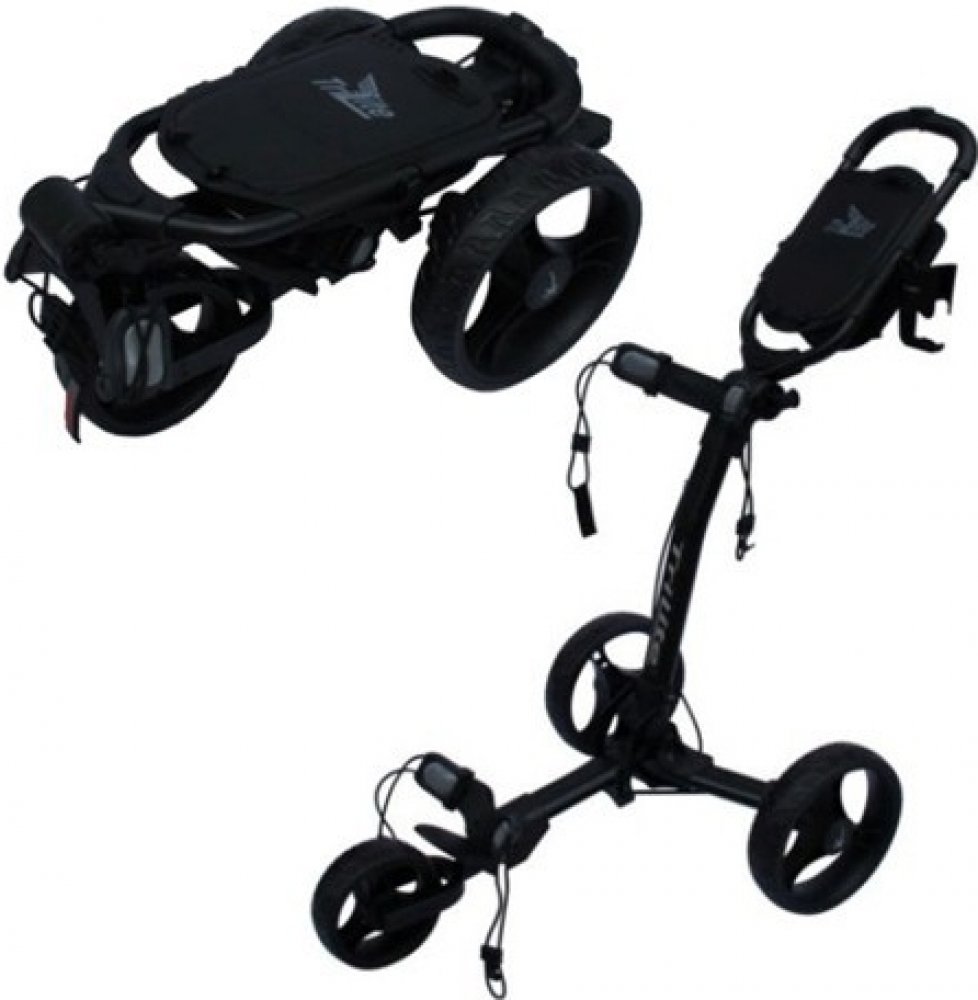 Manuální golfový vozík. Vlastnosti: Jedinečný Gliding system design, který zcela eliminuje výskyt škrábanců na rámu konstrukce při skládání vozíku. Vozík se tlačí snadno a plynule. Použití pevného průmyslového materiálu, poskytuje pevnou strukturu konstrukce a ostatních dílů. Aircraft grade hliník o tloušťce 1,5 mm a více poskytuje pro golfový vozík vyšší odolnost. Stojan na držení bagů podporuje většinu různých velikostí golfových bagů s nastavitelným popruhem na zajištění golfového bagu. Rukojeti jsou nastavitelné tak, aby vyhovovaly každému uživateli. Jednoduché zajištění a uvolnění ručního brzdového systému. Velkokapacitní konzola na ukládání osobních předmětů, golfových míčků a dalšího příslušenství. Bezúdržbové a bezvzduchové kola. Mezi příslušenství patří držák na nápoje a deštník. Složený vozík má rozměry 66cm x 43cm x 28cm, což usnadňuje jeho přenášení nebo skladování. Barevné provedení: Černá/Černá.