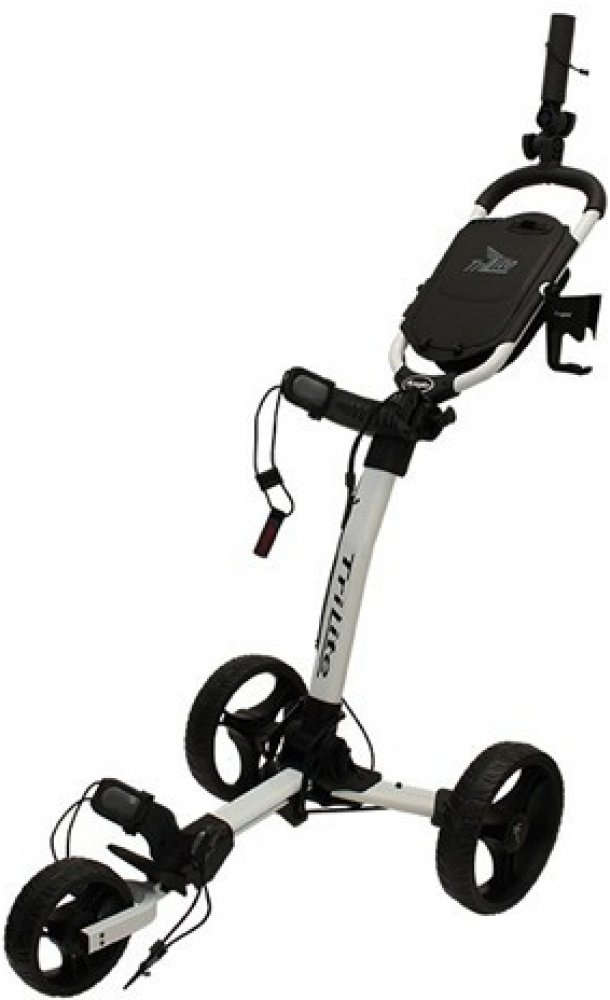 Manuální golfový vozík. Vlastnosti: Jedinečný Gliding system design, který zcela eliminuje výskyt škrábanců na rámu konstrukce při skládání vozíku. Vozík se tlačí snadno a plynule. Použití pevného průmyslového materiálu, poskytuje pevnou strukturu konstrukce a ostatních dílů. Aircraft grade hliník o tloušťce 1,5 mm a více poskytuje pro golfový vozík vyšší odolnost. Stojan na držení bagů podporuje většinu různých velikostí golfových bagů s nastavitelným popruhem na zajištění golfového bagu. Rukojeti jsou nastavitelné tak, aby vyhovovaly každému uživateli. Jednoduché zajištění a uvolnění ručního brzdového systému. Velkokapacitní konzola na ukládání osobních předmětů, golfových míčků a dalšího příslušenství. Bezúdržbové a bezvzduchové kola. Mezi příslušenství patří držák na nápoje a deštník. Složený vozík má rozměry 66cm x 43cm x 28cm, což usnadňuje jeho přenášení nebo skladování. Barevné provedení: Černá/Černá.
