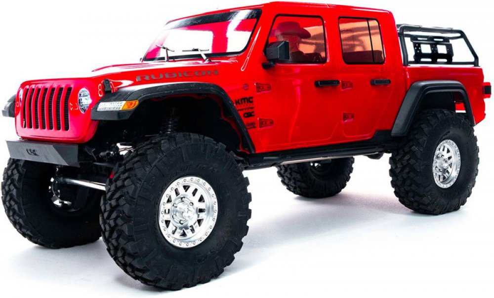 Expediční RC model auta Jeep JT Gladiator na podvozku Axial SCX10 III. Reálně vypadající podvozek s realistickým krytem převodovky, maketou motoru V8 a portálovými nápravami. Samozřejmostí jsou licencovaná kola. RC souprava Spektrum DX3 DSMR® s telemetrií.