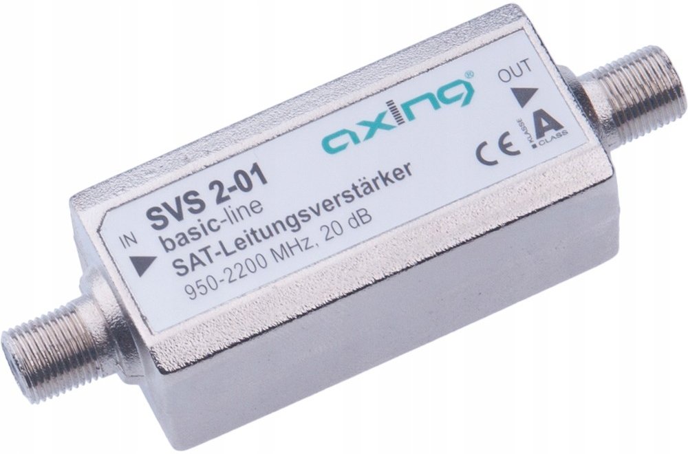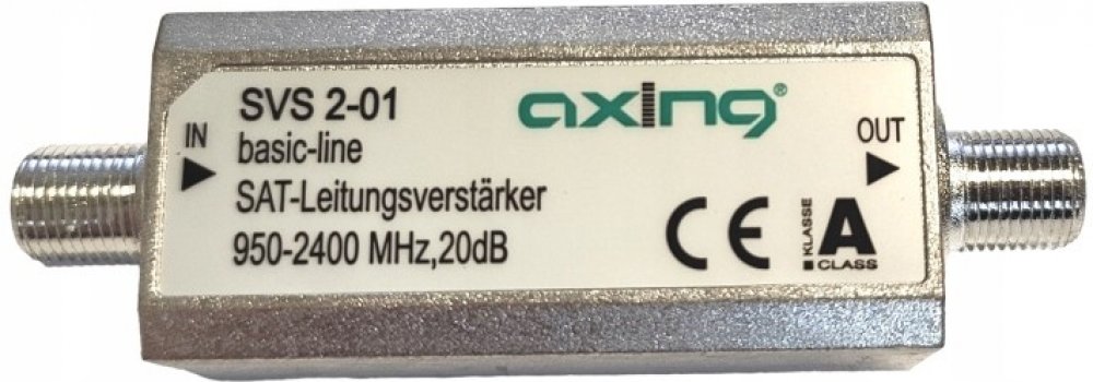 Informace o produktu "Axing SVS 2-01 SAT line amplifier, 950-2400MHz, 20dB, DC pass"Vlastnosti produktu:Průchod stejnosměrným proudemvhodné pro 22 kHzKompatibilní s DiSEqCKompatibilní s jedním kabelemNapájení přes koaxiální vedeníTechnické údaje:EMC: podle EN 50083-2, třída AFrekvenční rozsah: 950?2400 MHzZisk: 20 dBVýstupMax. Výstupní úroveň SAT (3. řád, EN 50083?3, 35 dB KMA): 110 dB?VVF připoje...