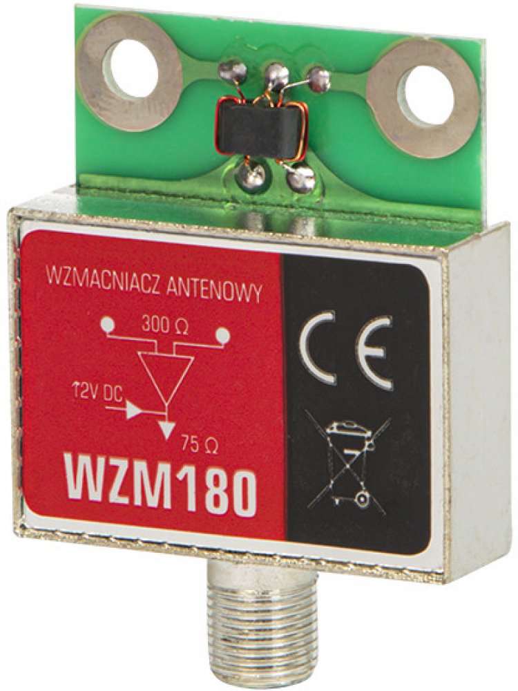 Vysoce kvalitní keramický stíněný anténní zesilovač do krabičky WZM180. Skvěle se osvědčí v případech slabého signálu, vyniká nízkou úrovní šumu. Zesilovač je určen k montáži do krabiček síťových a směrových antén s výstupní impedancí 300 Ohm.