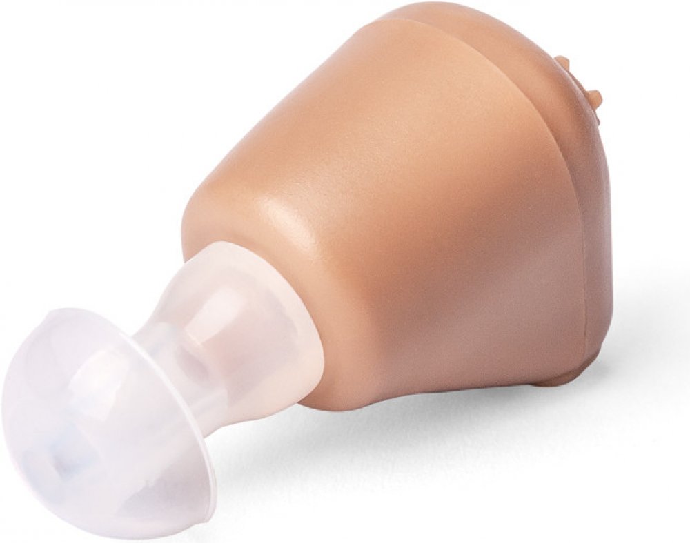 Velikost naslouchadla je dostatečně malá, aby se jeden jeho konec vešel do ucha. Tento konec je pokrytý silikonovým nástavcem dodávaným ve třech velikostech. Správně zvolená velikost umožní dokonale utěsnit přístroj ve zvukovodu, tak aby nedocházelo k interferenci zvuků, která může vyvolat pískání. Naslouchátko lze použít jak v levém, tak i pravém uchu.