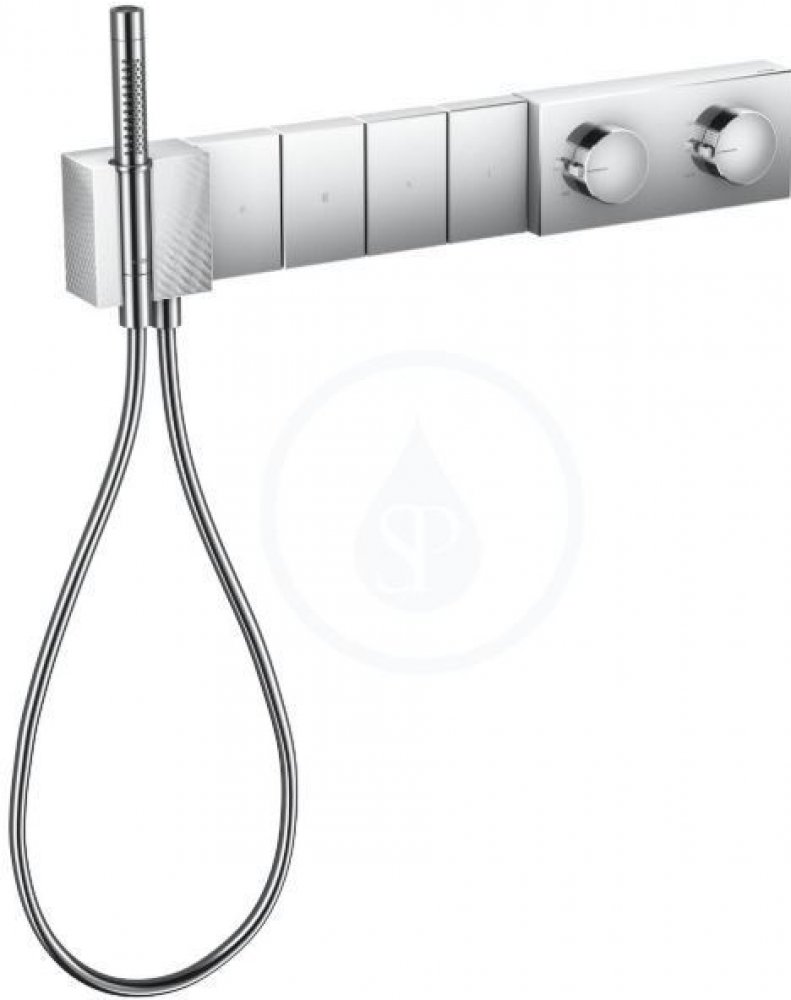 Termostatická podomítková baterie Select 610/100 pro 4 spotřebiče povrchová úprava chrom povrchová úprava části baterie diamantový brus balení obsahuje termostat, sprchový držák, tyčovou ruční sprchu, sprchovou hadici s kovovým efektem 1,25 m pro 4 spotřebiče současné použití více spotřebičů komfortní zapnutí/vypnutí 4 spotřebičů tlačítkem Select termostatická kartuše, regulace průtoku vody, zabudovaná funkce uzavírání, ventil Select Start/Stop bezpečnostní pojistka při 40°C nastavitelné omezení teploty držák sprchy pro sprchové hadice s válcovou matkou na obou koncích K instalaci nutné dokoupit základní těleso pod omítku.